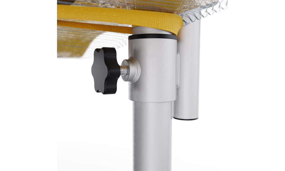 Рама и ножки выполнены из надёжной стальной трубы Ø25 мм с толщиной стенки 1,4 мм. Батут оснащён 6 ножками, которые равномерно распределяют нагрузку и обеспечивают устойчивость при прыжках. Мягкий защитный мат из ПВХ закрывает пружины и раму, предотвращая случайные удары и повышая комфорт во время занятий.